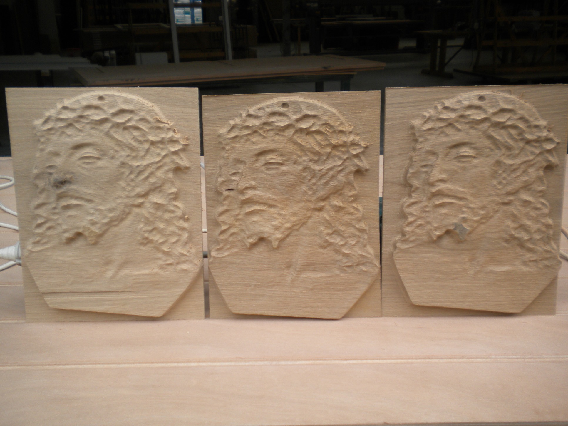 Bassorilievi Bassorilievi "Il Cristo" su tavola di legno e lavorati con pantografo Diversa visuale dei bassorilievi "Il Cristo" Altra visuale del bassorilievo "Il Cristo" Bassorilievo "Il Toni"